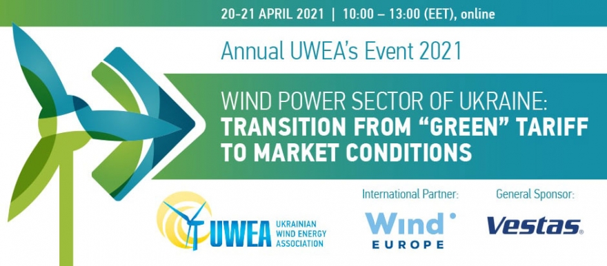 The annual conference of the Ukrainian Wind Energy Association 2021 is dedicated to an expert discussion on further development of the national wind power industry in transition from feed-in tariff to market-based conditions. The UWEA’s annual event is supported by the Ministry of Energy of Ukraine and the State Agency on Energy Efficiency and Energy Saving of Ukraine. International Partner of the Conference is WindEurope, General Sponsor - Vestas Northern & Central Europe.