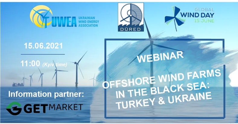 Symbolically, on Global Wind Day, June 15, 2021, the Ukrainian Wind Energy Association and the Turkish Offshore Wind Energy Association, hold a joint international webinar “Offshore Wind Farms in the Black Sea: Turkey and Ukraine”. Leading experts from Turkey and Ukraine will reveal the full range of maritime potential of their countries, necessary for the deployment of offshore wind capacities. Mr. Andriy Konechenkov, the Chairman of the Board of Ukrainian Wind Energy Association, and Dr. Murat Durak, Chairman of Turkish Offshore Wind Energy Association will open the webinar. Our information partner – GetMarket, Platform for renewable energy investments.