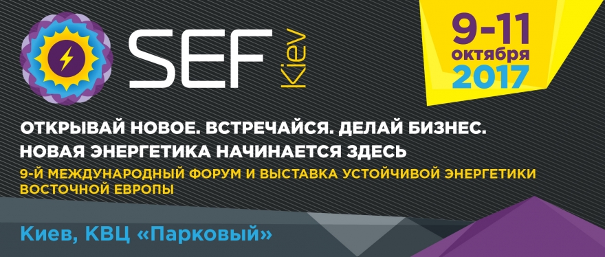 С 9 по 11 октября 2017 г. в конгрессно-выставочном центре «Парковый» (Киев) пройдет крупнейшее в Восточной Европе бизнес-мероприятие, посвященное новейшим энергетическим технологиям, возобновляемым источникам энергии и энергоэффективности – 9-й Международный Форум и Выставка Устойчивой Энергетики SEF- 2017 KYIV.